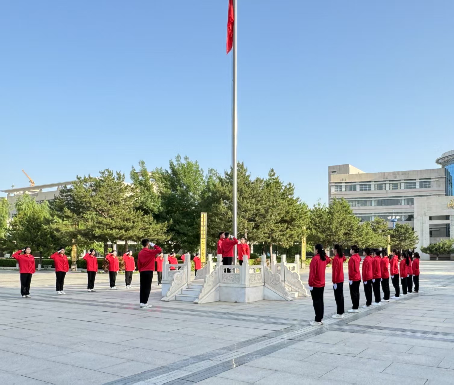 五月芳菲,绿意盎然。5月19日,外语系团总支在至善广场举行了“呵护心灵绿洲,共筑健康防线”主题升旗仪式。参加本次升旗仪式的有外语系党总支副书记、外语系团总支书记、专职辅导员、班主任及全体在校学生。