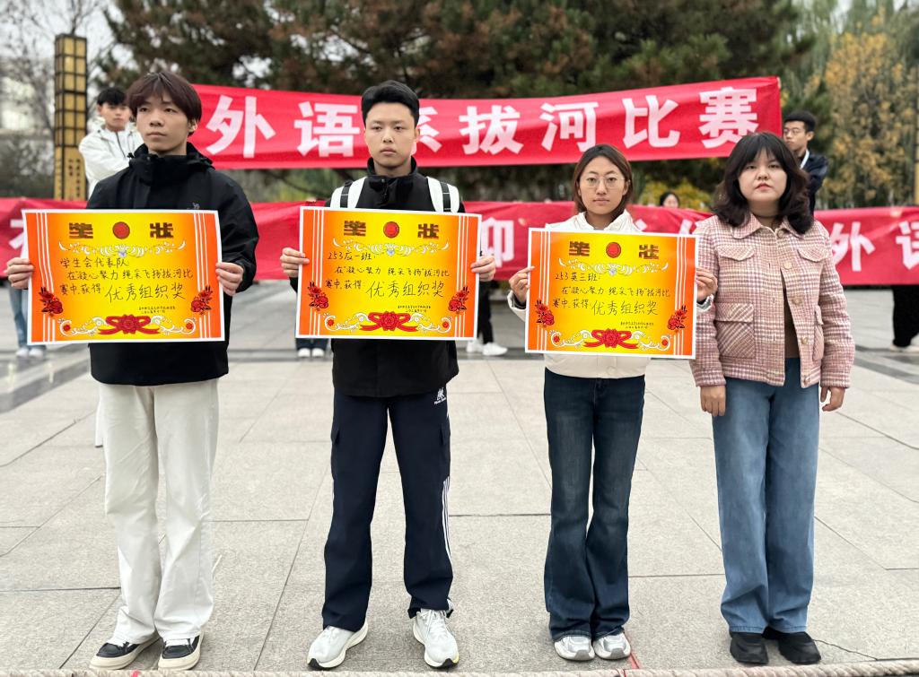 为丰富校园文化生活,增强学生的团队凝聚力与协作精神,11月6日,外语系团总支在至善广场组织开展了“凝心聚力‘绳’采飞扬”拔河比赛。
