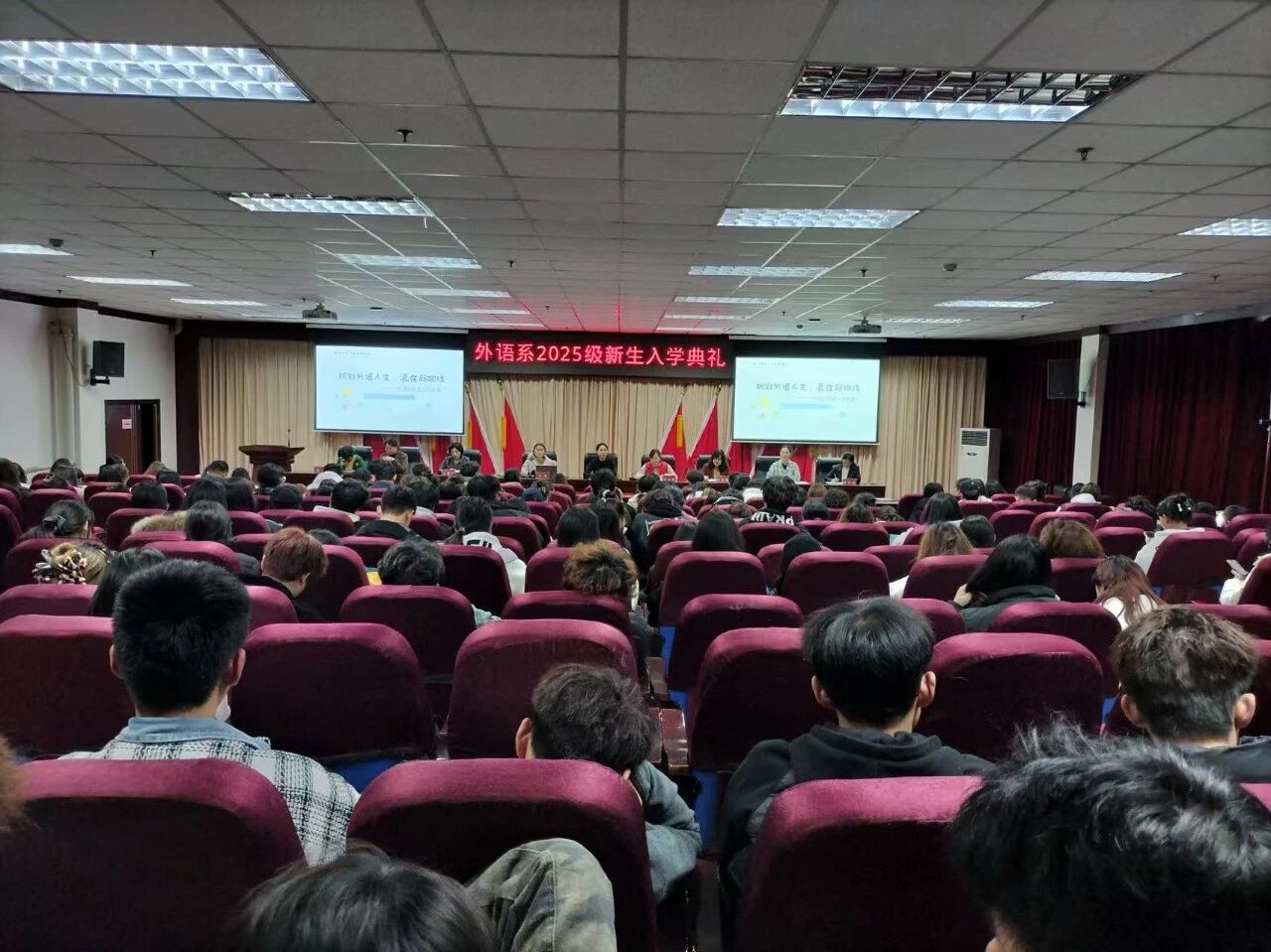 春华秋实,笃志勤学。10月30日,外语系2025级新生开学典礼在报告厅隆重举行。外语系党总支书记白永慧、外语系副科级以上干部、2025级新生辅导员、班主任及全体新生共计200余人参加典礼。典礼由系党总支副书记张灵燕主持。